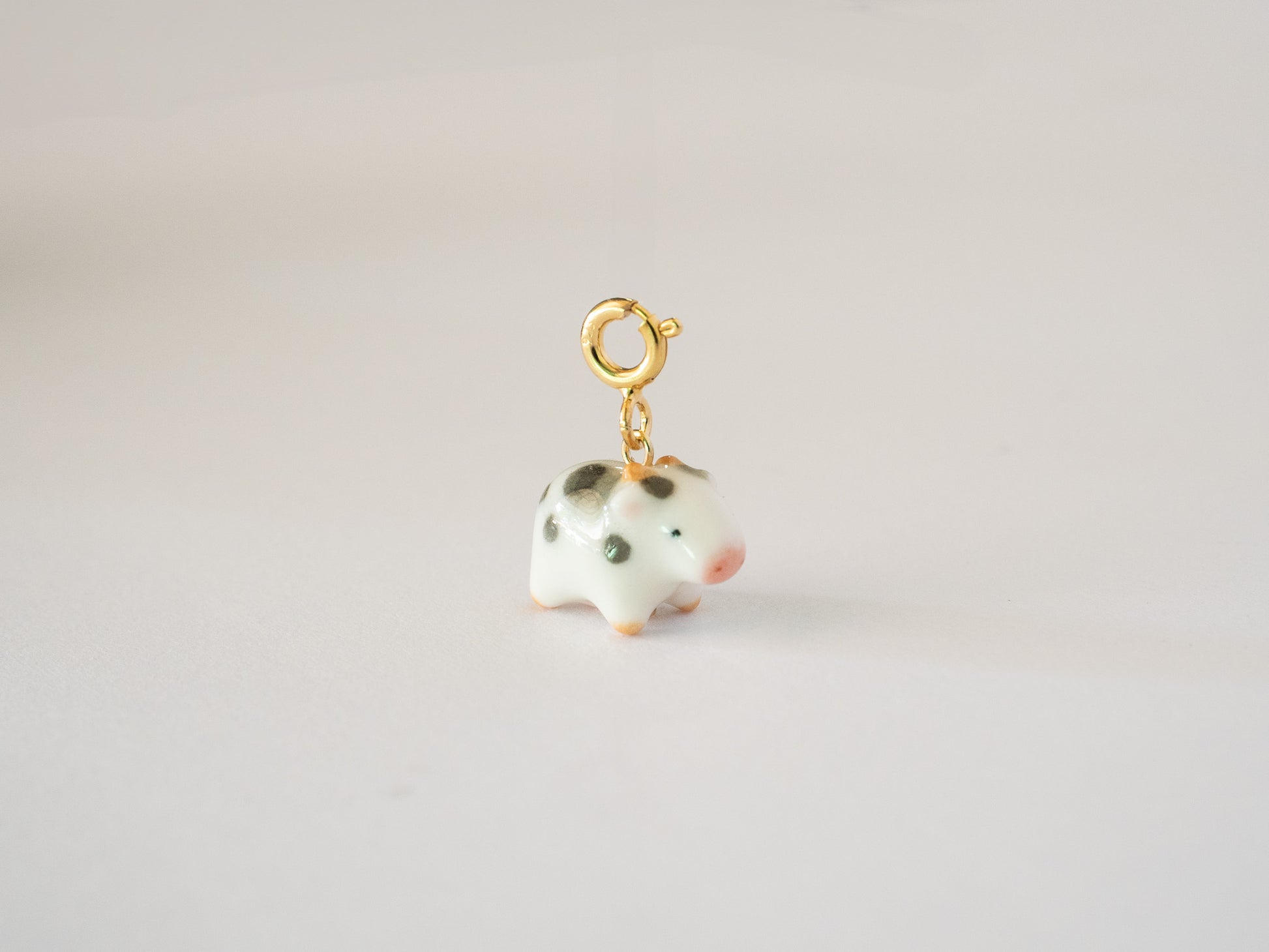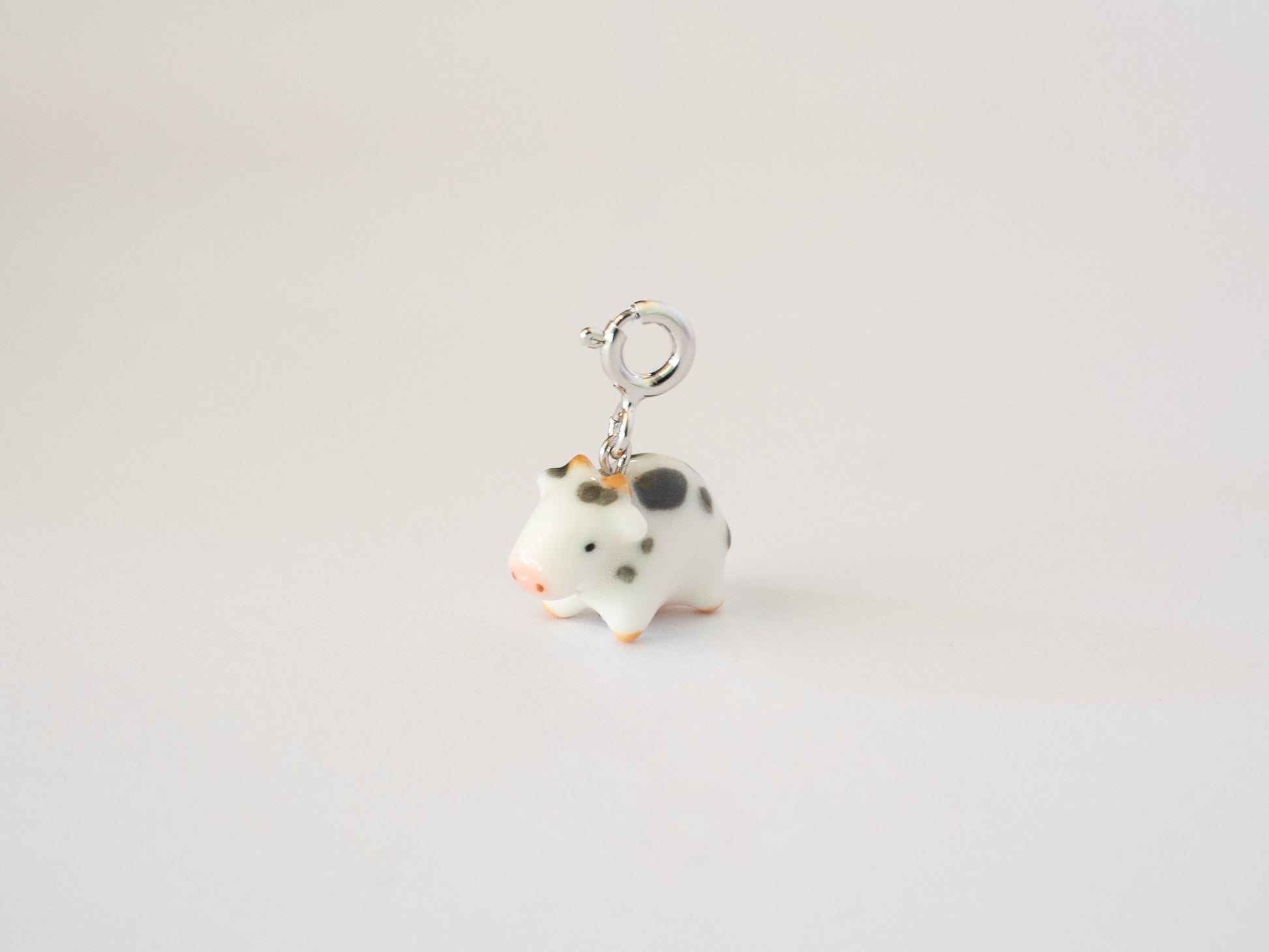 Tiny Handmade Porcelain Cow Charm