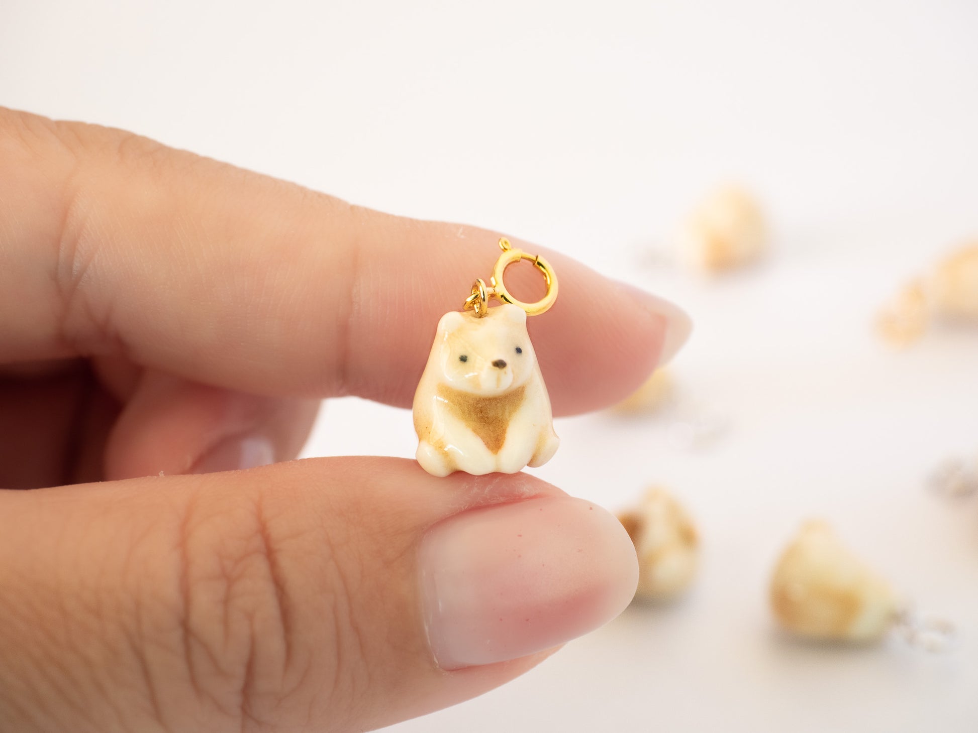 Tiny Handmade Porcelain Brown Bear Charm